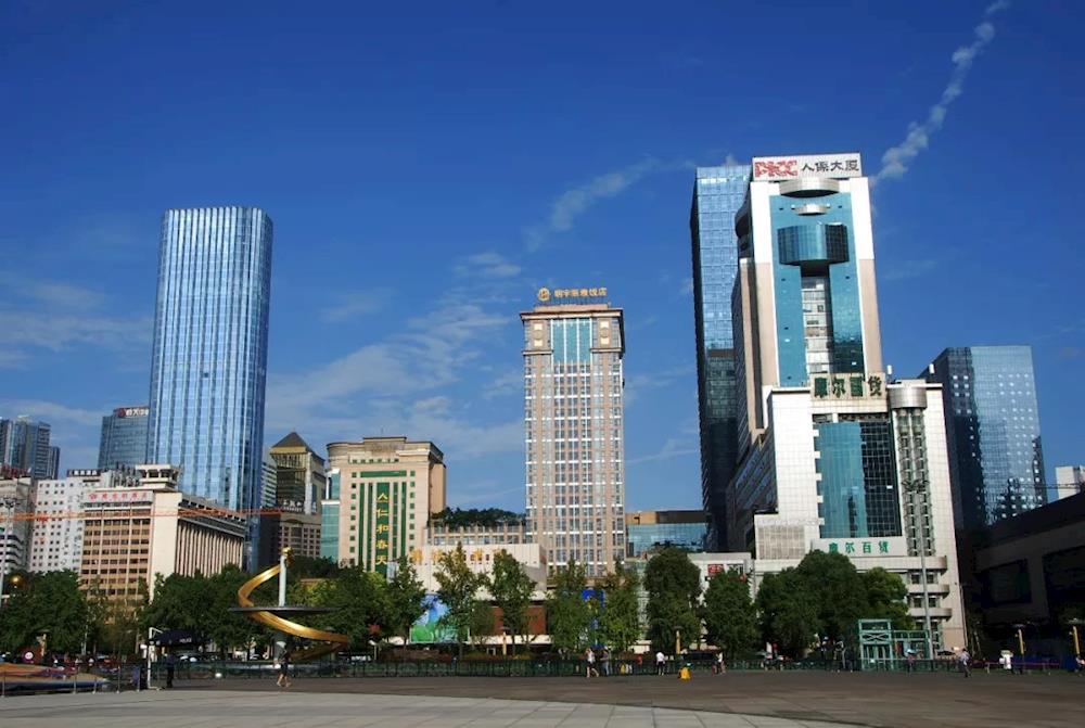 2017年9月10日,成都天府广场旁建筑(蓬州闲士/摄)