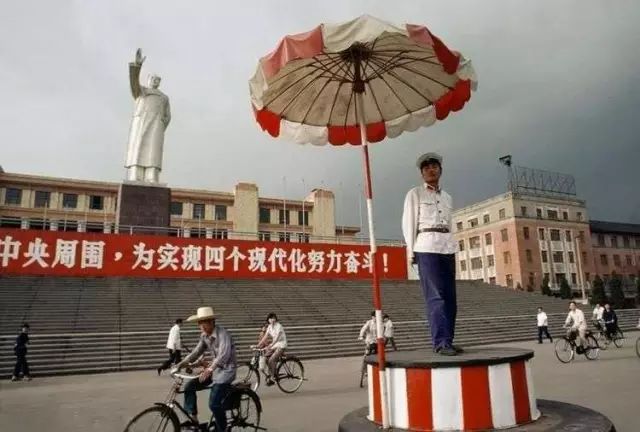 1981年,成都,四川省展览馆(今四川科技馆)前的交通指挥岗亭。当年,此岗被称为成都第一岗。