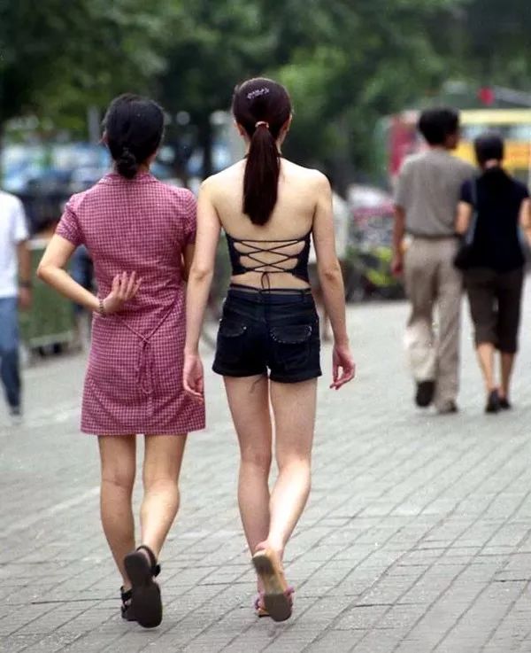 1999年夏,成都红星中路二段,露背装。