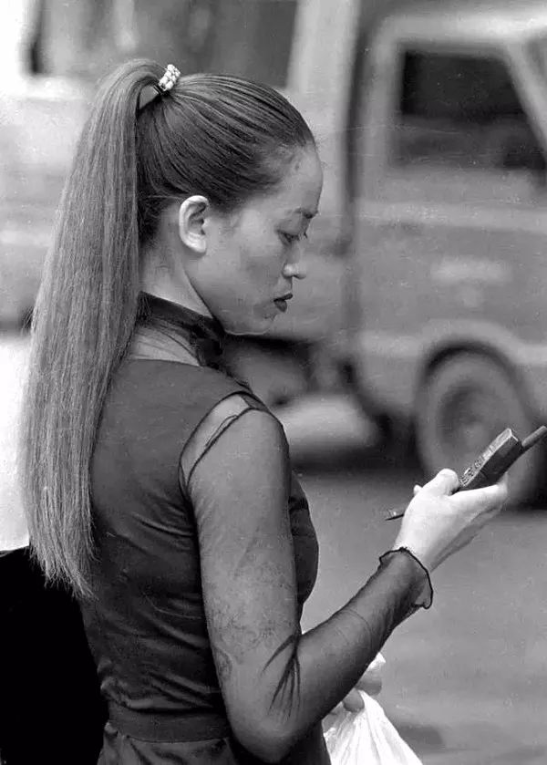 1997年,成都,拿手机打电话的靓女。