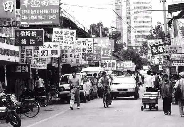 1990年代,成都沙帽街汽配市场,随着汽车的增加而形成的汽配一条街。