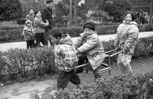 1990年代,成都,孩子们在“抬马马”。