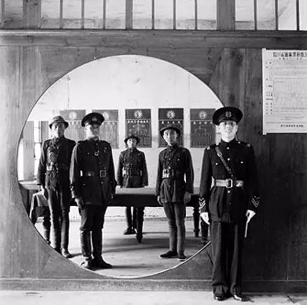 民国时期,成都警察局,警员的站姿还是很标准的。