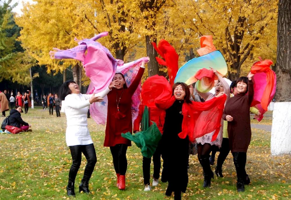 2017年12月9日,成都,电子科技大学清水河校区挥舞红绸的女子(蓬州闲士/摄)