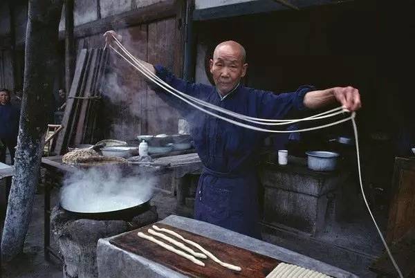 1980年,成都,街边一家餐馆的厨师正在拉面(布鲁诺·巴贝/摄)