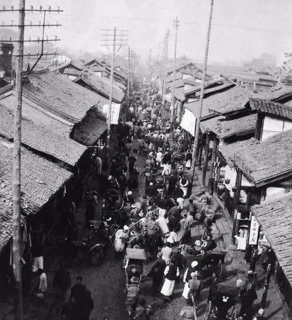 1920年,成都,东大街上的人群。