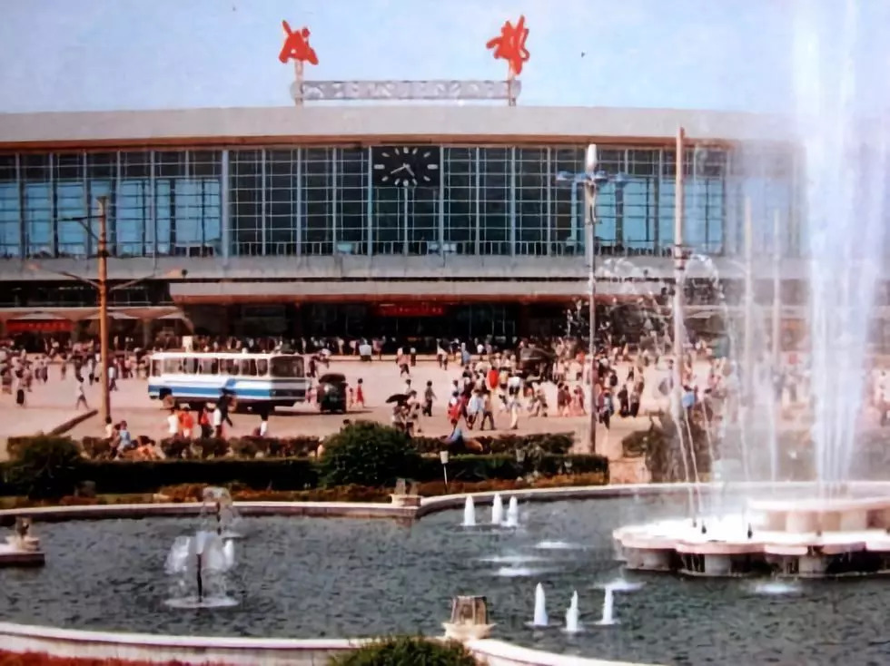 1987年,成都火车北站站前广场及喷水池。