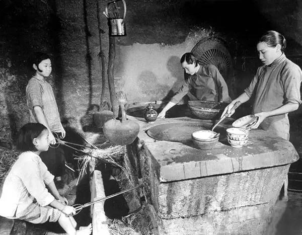 1941年,简阳县龙泉驿,妇女在厨房做饭(卡尔·迈登斯/摄)