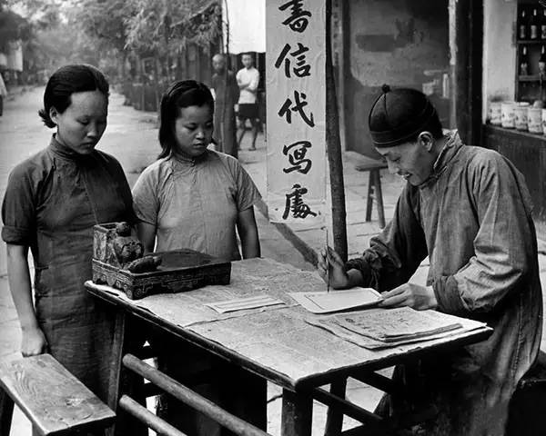 1941年,简阳县龙泉驿,代写书信营生的先生(卡尔·迈登斯/摄)