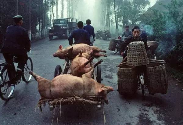 1980年,成都,农民们赶往街市上卖猪(布鲁诺·巴贝/摄)