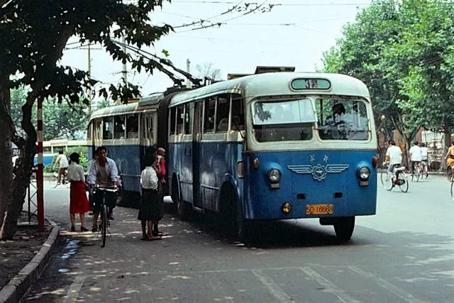 1980年代,成都,九眼桥电车站。