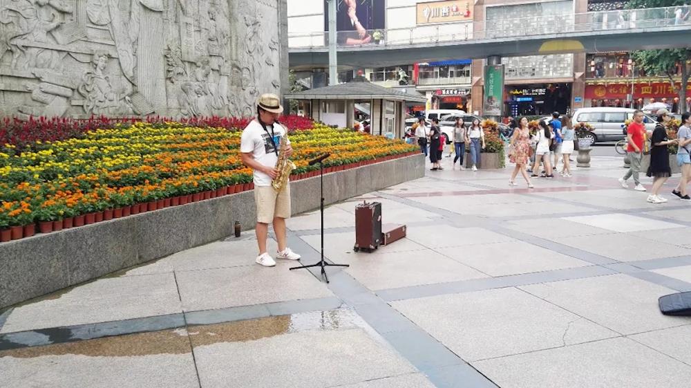 2018年8月3日,成都春熙路,萨克斯演奏(蓬州闲士/摄)