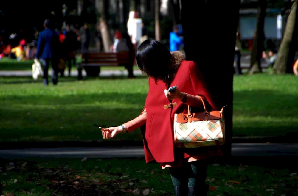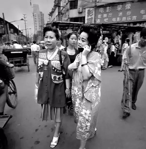 1990年代,成都青年路,手拿大哥大通话的美女。