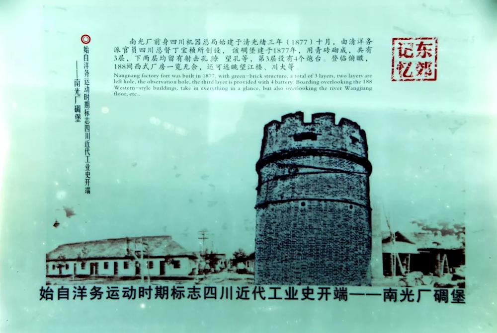 始自洋务运动时期标志四川近代工业史开端——南光厂碉楼。该碉楼建于1877年,可远眺望江楼、四川大学等地(蓬州闲士翻拍于成都东郊记忆)