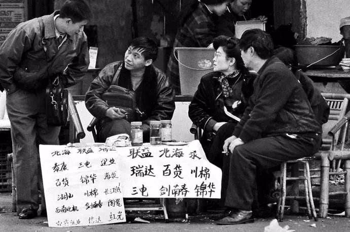 1992年,成都红庙子股票买卖摊位。