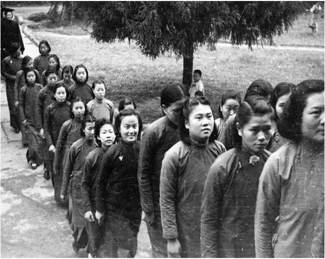 1939年,校庆日进入庆典现场的金陵女子文理学院学生