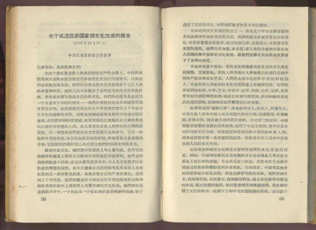1957年,中国代表团副团长楚图南《关于促进亚非国家间文化交流的报告》。