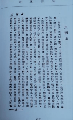《成都人》中,每个名人的描述文字不多,一般为2页,少数占3页。《成都人•焦酉山》为两页(第55、56页)。