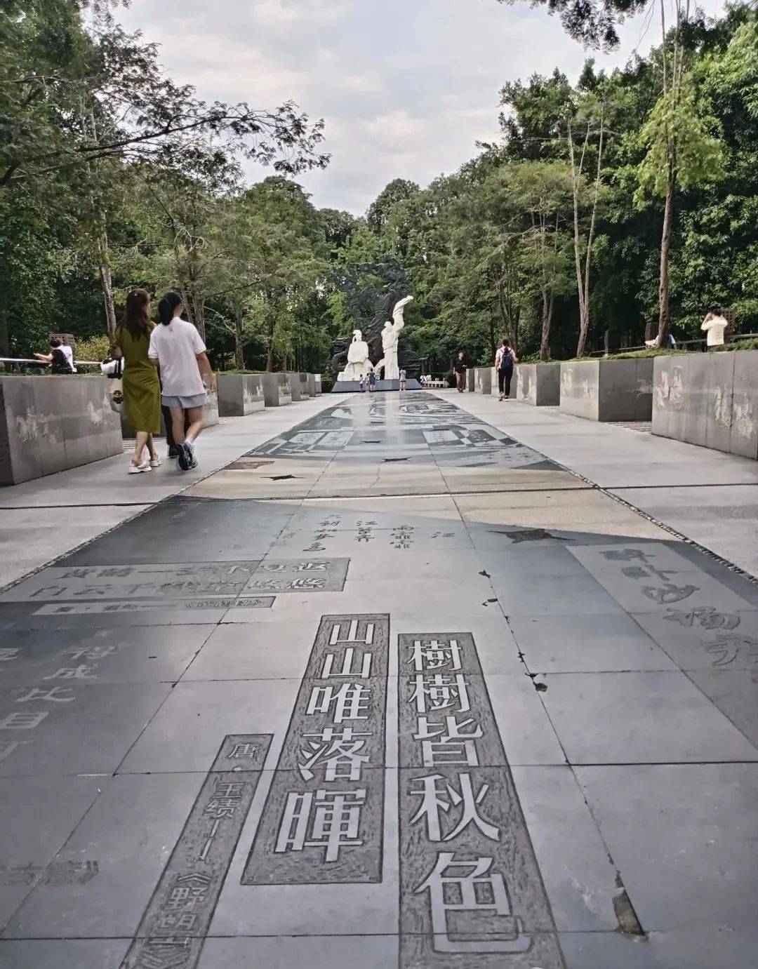诗歌大道两旁是各个朝代代表性的诗人塑像和他们的诗歌名句。