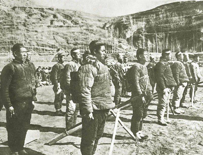 中国共产党始终坚持动员人民、依靠人民,推动形成了全民族抗战的历史洪流,使日本侵略者陷入了人民战争的汪洋大海之中。图为民兵在冬闲时抓紧训练,准备随时配合八路军作战。