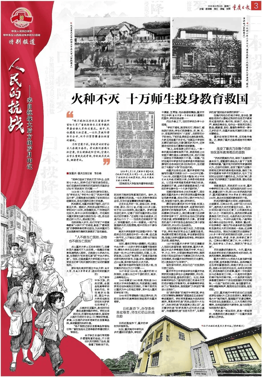 在那段烽火岁月,他们书写了中国高等教育“火种不灭”的奇迹,彰显了“教育救国”的铮铮铁骨和责任担当,为后来重庆乃至全国教育的蓬勃发展奠定了坚实基础。