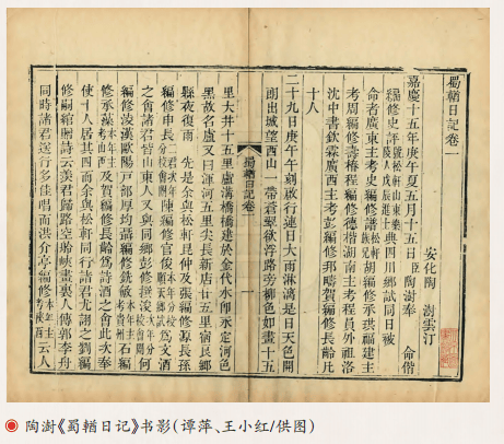 与李德淦《蜀道纪游》同时期的蜀道行纪文献有陶澍《蜀輶日记》。陶澍为清代经世派大家,他于清嘉庆十五年(1810)典试入蜀时作《蜀輶日记》一书,谓“蜀地在坤维井络,古梁州之城,去京师七十七驿”,并详细记载沿途山川经纬、形势险易、建置沿革、郡邑利弊等。陶澍由京师入蜀取道冀、雍,回则经荆、豫,水陆兼程往返。