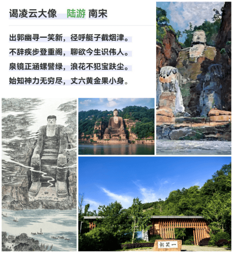 在这片壮丽的汉嘉山水中,陆游不仅钟情于这里的灼灼海棠,也和这里的山山水水有如知己般的情意。在任期间,陆游为嘉州百姓做了不少实事,架浮桥、修河堤、建月榭。在《同何元立蔡肩吾至东丁院汲泉煮茶》中,吟出了他的百首茶诗中的佳作:“雪芽近自峨眉得,不减红囊顾渚春。旋置风炉清樾下,他年奇事记三人”。原来,“峨眉雪芽”还是他取的名字。在游峨眉山麓时,写下了《峨眉山村旅舍作》,最有特色的是《登荔枝楼》《谒凌云大像》《雨中登楼看大佛》《离嘉州宿平羌》《跋岑嘉州诗集》《监郡犍为将归使府登楼寓题》等,其中的名句有“公事无多厨酿美,此身不负负嘉州”“出郭幽寻一笑新,径呼艇子截烟津。不辞疾步登重阁,聊欲今生识伟人”等。