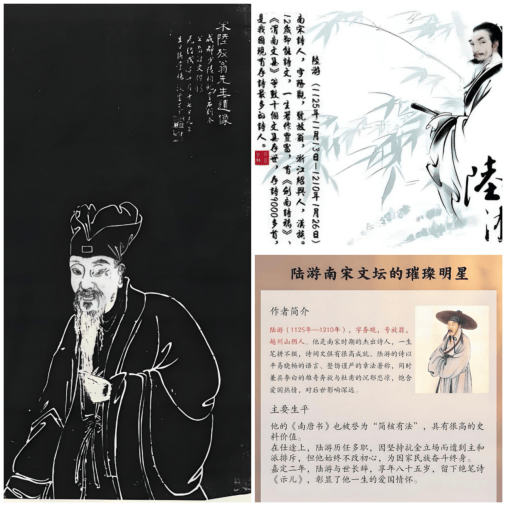 陆游(1125年—1210年),字务观,号放翁,汉族,越州山阴(今绍兴)人,南宋文学家、史学家、爱国诗人。