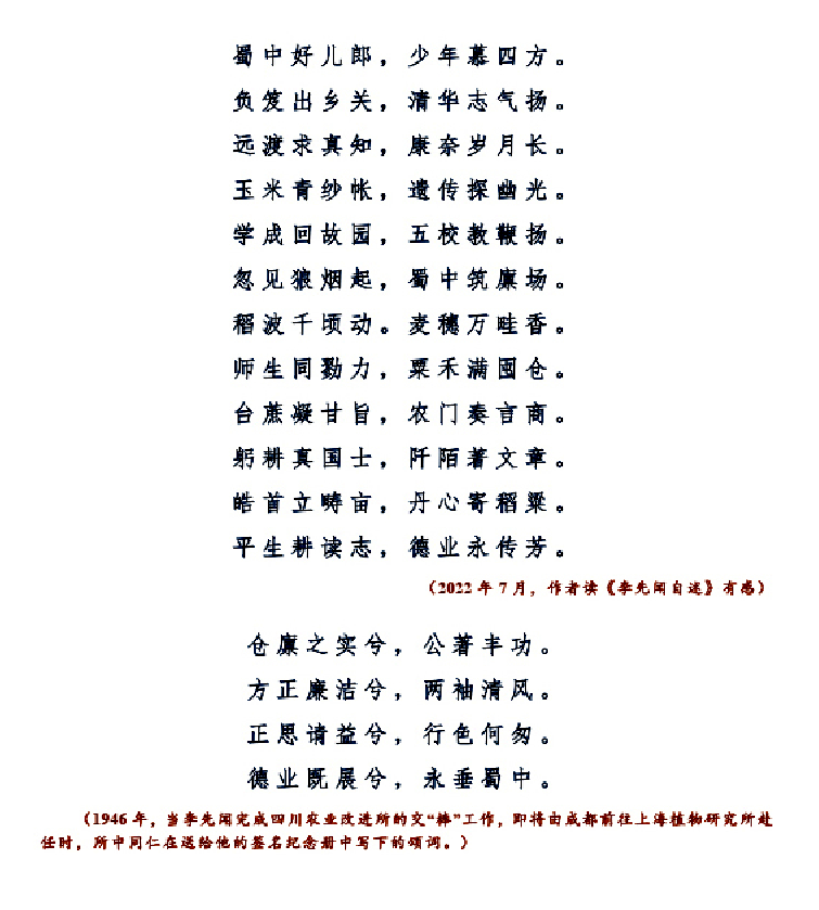 时值中国人民抗日战争暨世界反法西斯战争胜利80周年之际,笔者谨作小文一篇,致敬抗战时期的中国遗传育种学家,追忆他们以当时新成立的四川农业改进所为基地,在极其艰难的条件下,用最朴实的心愿和报国之志,埋头于稻、麦、粟、玉米等农作物遗传育种方面的研究与实践,为增产粮食支援抗战作出的一份独特贡献。