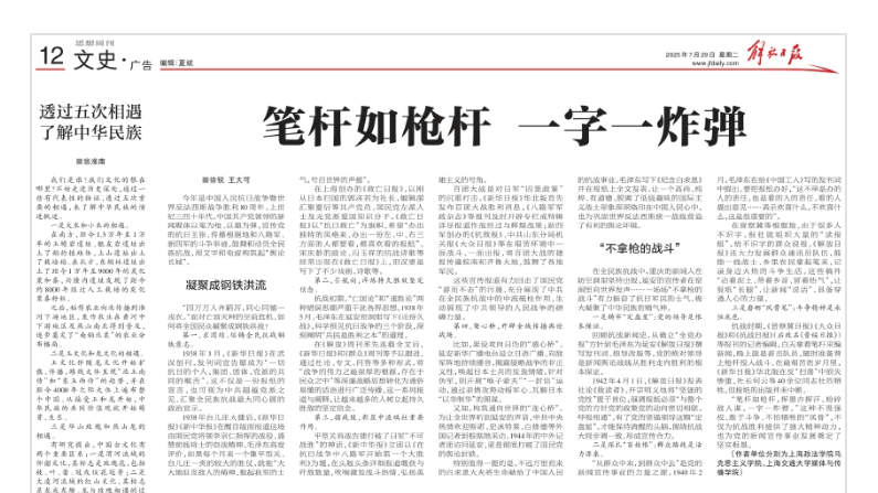 【纪念抗战胜利80周年】笔杆如枪杆 一字一炸弹‖徐锐 王大可