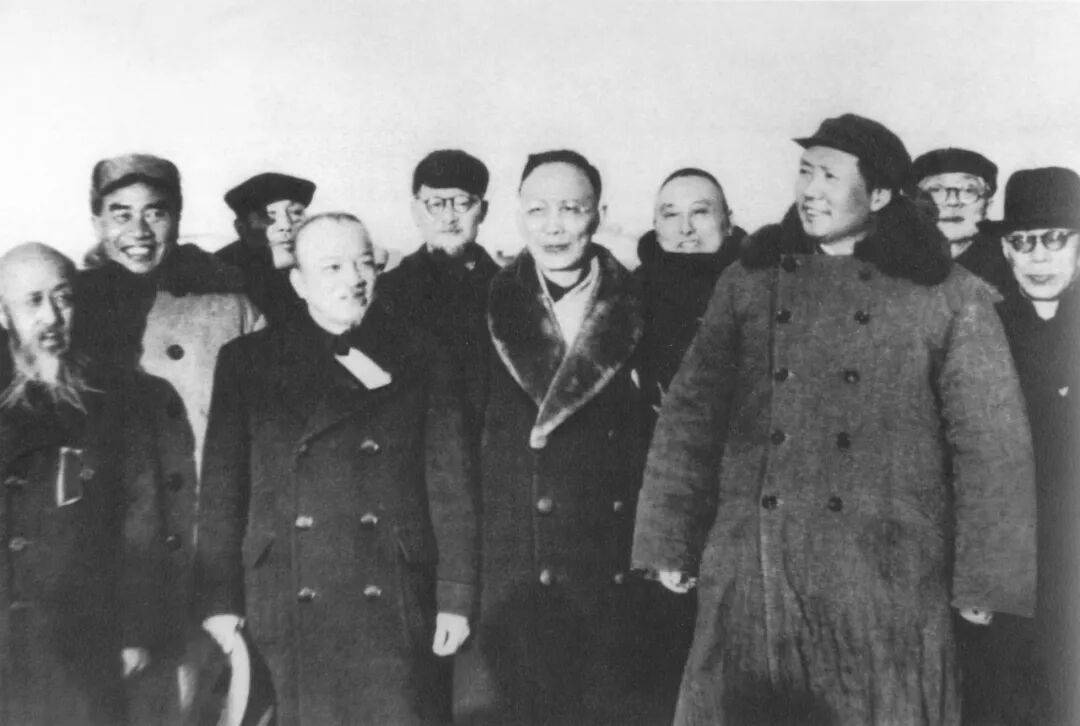1949年3月25日,毛泽东等在北平西苑机场受到各界代表及民主人士的热烈欢迎。