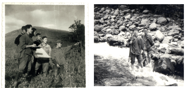1976年“熊猫一调”中的野外考察(左图左起:1李兴虎、2刘顺茂、4李俊明;右图左起:1冯永康、2哈沄源)