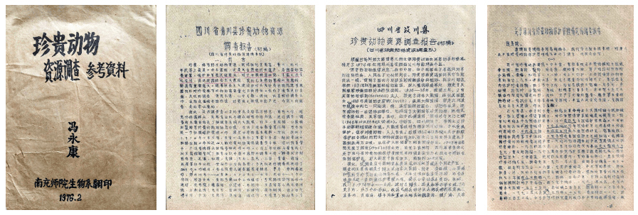 同时,生物系抽调部分师生及时编写油印《珍贵动物资源调查参考资料》,并陆续发放装订成册供学习使用。《珍贵动物资源调查参考资料》的内容主要包括:(1)国务院及农林部、四川省林业厅印发的“加强珍贵动物资源保护管理”“珍贵动物资源保护级和调查的座谈会纪要”等有关文件;(2)脊椎动物(兽类)和植物标本的采集、制作和保存方法;(3)野外考察的工作方法和安全防护知识;(4)我国禁猎保护动物名单(已知);(5)胡锦矗带领的四川省珍贵动物资源调查队,已经开展的部分野外考察活动形成的报告(初稿)。如,“四川省汶川县珍贵动物资源调查报告(1974)”“四川省青川县珍贵动物资源调查报告(1975)等。