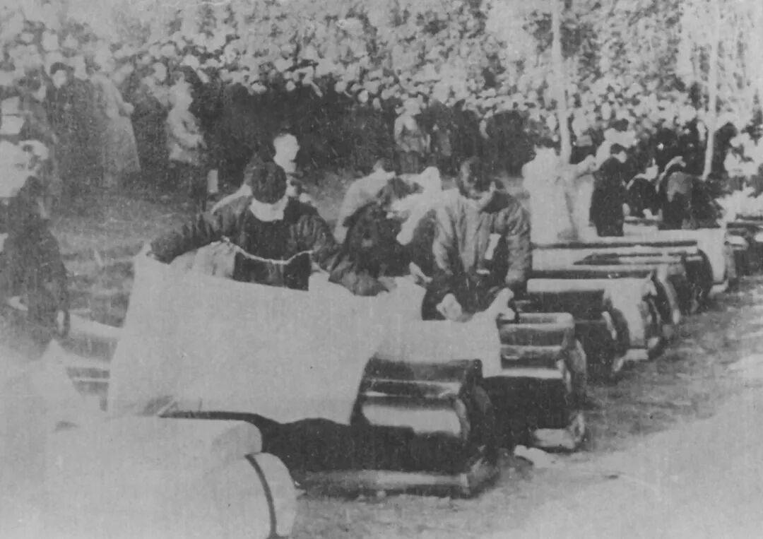成都解放后,人民政府组织人员清理“十二桥惨案”现场。