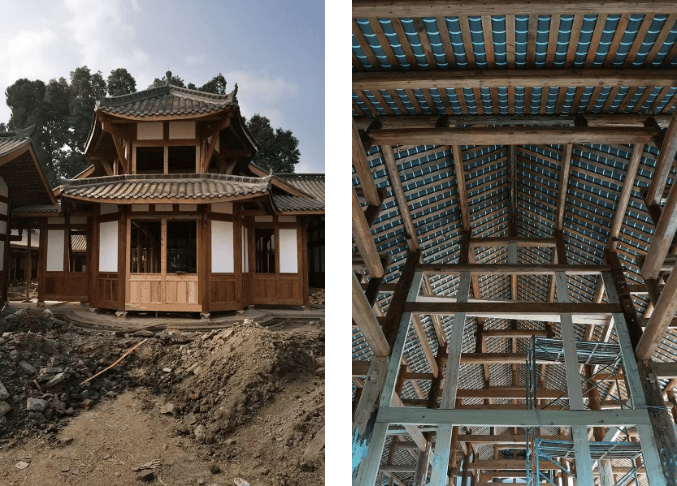 该圣修堂始建于清咸丰年间,后几毁几建,最后留存的为民国早期重新修缮后的中式合院建筑。现当地在原址重建圣修堂,全木结构的主体建筑与附属建筑全部建成。院内几棵粗大的木树,挺拔参天,昭示着圣修堂曾经的古远。