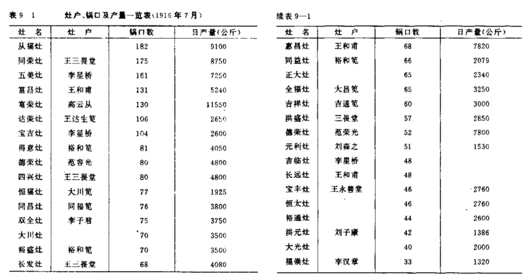 《自贡市盐业志·制盐》列表记载民国5年自贡灶户、锅口及产量
