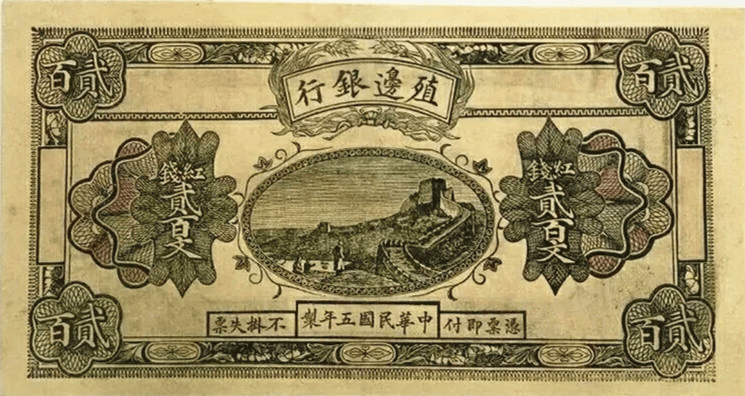 殖边银行民国5年红钱贰百文