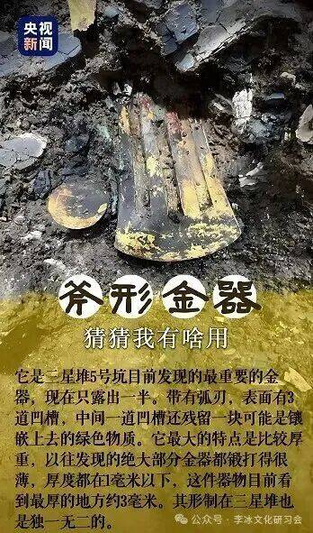 三星堆遗址出土的黄金斧形器,似历史上帝王专属的“黄钺”。