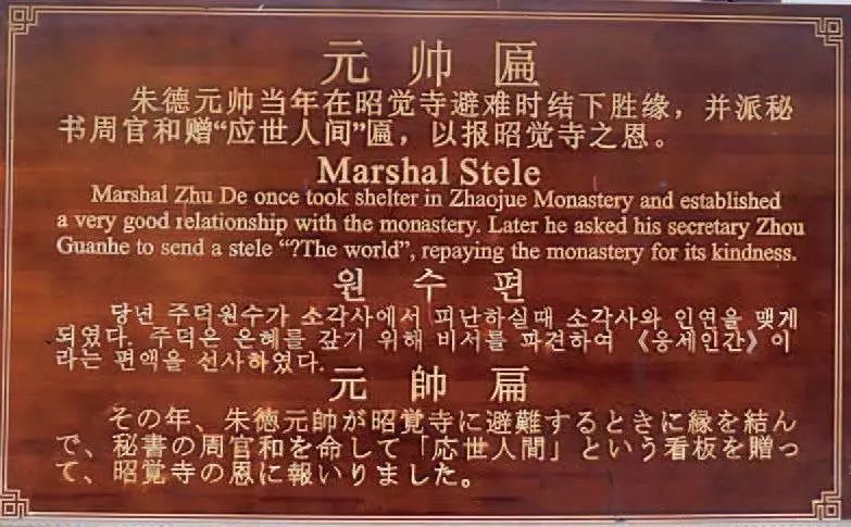 20多年前,为纪念朱德总司令,昭觉寺把八仙堂改为思德堂,挂匾“应世人间”(1986年请洪志存先生手书,下简称洪匾,但各方人士已不能完全记得“应世人间”匾的原貌)