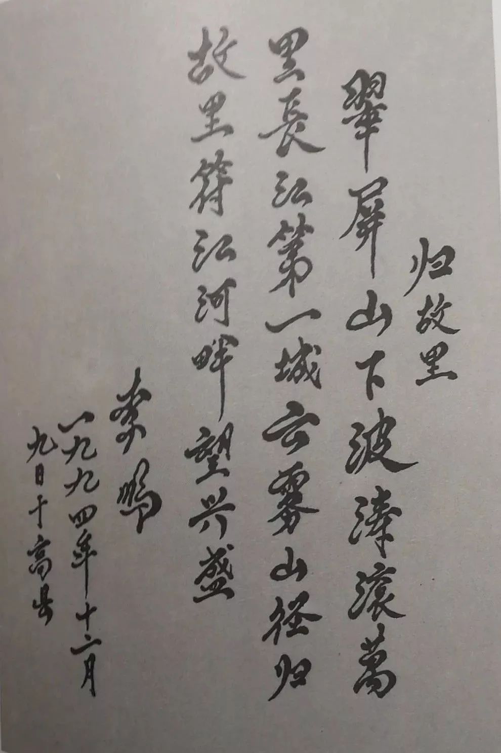 1994年12月,时任国务院总理李鹏回到家乡高县作诗并手书《归故里》(宜宾市地方志办公室 供图)