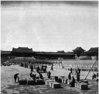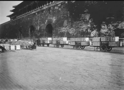 集聚在午门前预备南迁的故宫文物