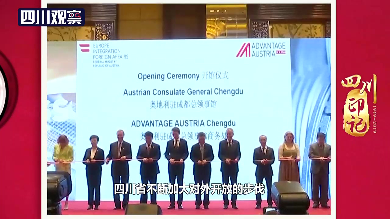 三十多年来,四川省不断加大对外开放的步伐,随着2018年4月奥地利驻成都总领事馆开馆,已有17个国家获批在成都开设总领事馆,分别为美国、德国、韩国、泰国、法国、新加坡、巴基斯坦、菲律宾、斯里兰卡、澳大利亚、新西兰、印度、以色列、波兰、捷克、瑞士、奥地利,数量位居全国第3位,仅次于广州、上海。