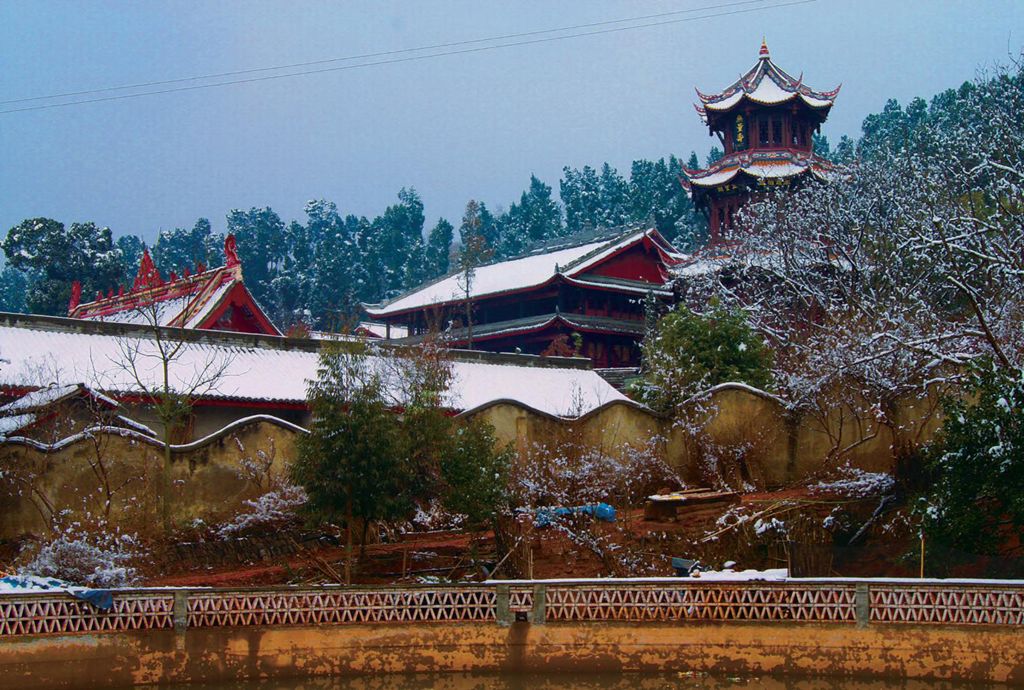 这座生长着“不死之药”的仙山,帮助李八百完成修炼壮举,昭示出有志者事竟成的道理。李八百在这里首开学道之风,留下丹灶石室、八音洞和李阳冰为他题写“龟鹤齐寿”的圣迹,也留下“栖贤山”的别称。他的女弟子李真多继承师父事业,又在这里取水炼丹,增添了“仙女井”和“星楠”圣迹。 此后学道学佛的,接踵而至,氤氲一脉在这里薪火相传,让三学山名扬四海。到东汉汉安元年(142)的壬午上元日,时已高寿的天师道教主张道陵,来这里踏访选址,终于在山上建成“昌利山治”(如今的鸿都观),在山下建立“真多治”(曾经又叫龙王庙)。张道陵 建二十四治已分布数省,这里竟占了两治,如不看重这里,何必独钟于此。
