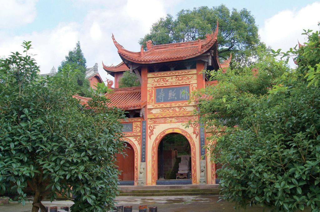 关于金堂三学山的神秘性,《山海经·大荒西经》早有揭示:“有灵山,巫咸、巫即、巫盼、巫彭、巫姑、巫真、巫礼、巫抵、巫谢、巫罗十巫,从此生降,百药爰在”。而该书在“海内西经”里,还由面到点指出:“开明东有巫彭、巫抵、巫阳、巫履……皆操不死之药以拒之。”这里的“开明东”,正是以古蜀国望丛二帝的郫都(郫县)为坐标,向东南遥望那座“百药爰在”的仙山。书中称远古时候曾有10个神巫(部落酋长),在这座山上采集长生不老之药,这就是龙泉山脉金堂段的“三学山”。