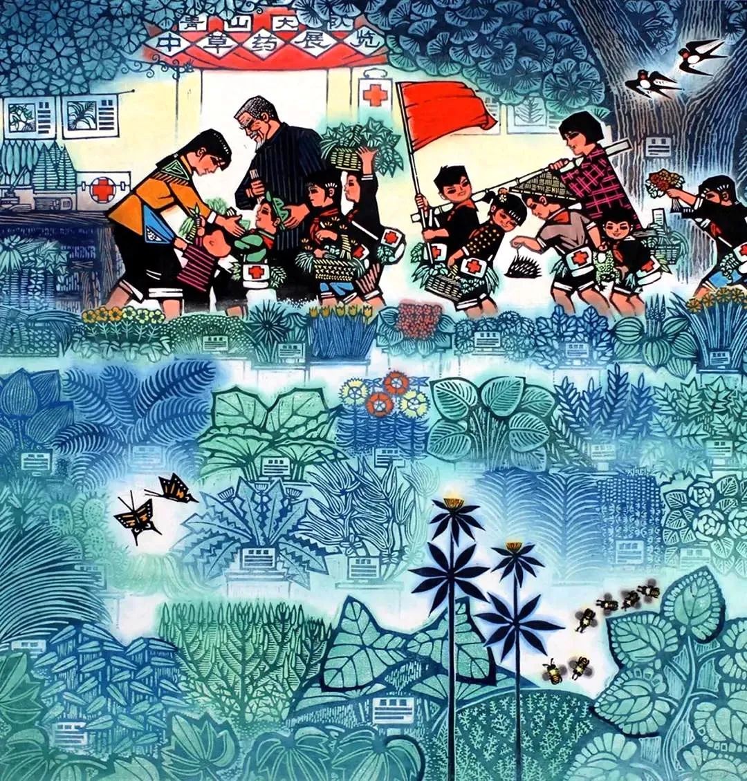 速泰熙 医药宝库开新花 1978年 59.8cm×59.5cm 版画 纸本 江苏省美术馆藏 (图片来源:中华美网)