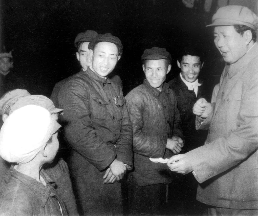 1958年,毛泽东视察四川农村卫生工作时,拿着蟑螂标本,问娃娃们认识不认识(图片来源:中国共产党新闻网)