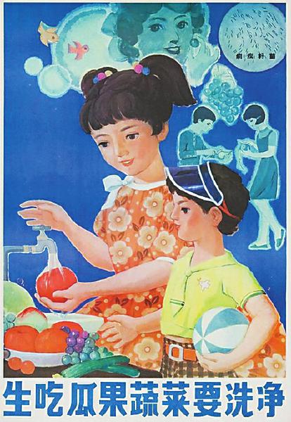 ②宣传画《生吃瓜果蔬菜要洗净》廖宝珠 1985年 北京市卫生教育所