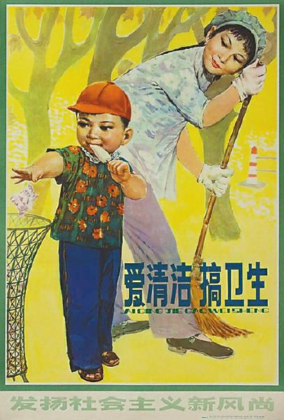 ⑥宣传画《爱清洁搞卫生》周瑞庄 1982年 上海人民美术出版社 本版宣传画由江苏省美术馆提供