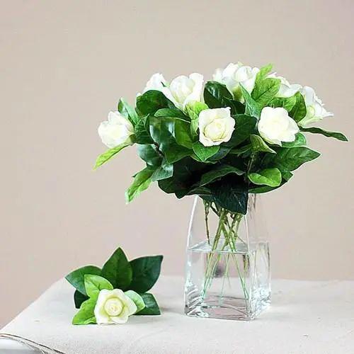 这朵红花名叫红栀子花,形似“薝卜”(梵语campaka的音译,义译为郁金花。也有人说是栀子花),也是“花皆六出”,每朵花都有六片瓣,所不同的是薝卜开的是白花,而此花之色却是艳艳的红。