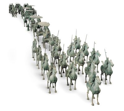 图为武威雷台汉墓的铜车马武士仪仗俑。